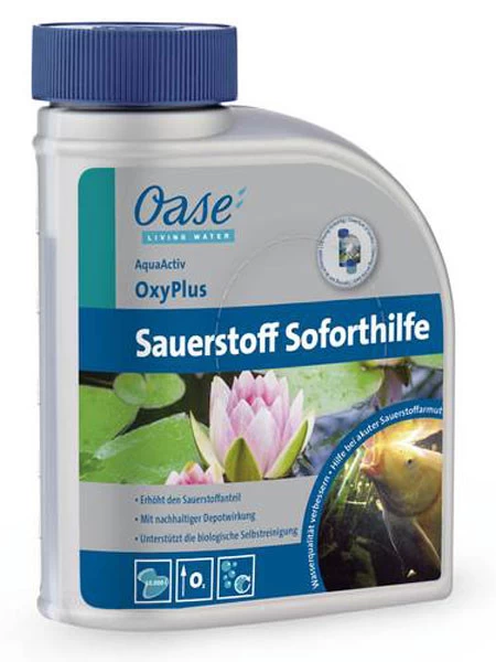 OASE AquaActiv OxyPlus erhöht den Sauerstoffanteil im Gartenteich und wirkt dadurch schnell und zuverlässig einem drohenden Sauerstoffmangel entgegen.