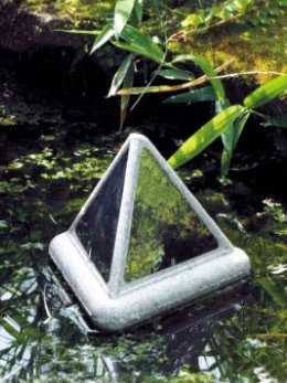 Die anwachsende Reiherpopulation wird für Teichliebhaber ein immer größeres Problem. Ein ausgewachsener Reiher hat keine große Mühe, einen Fisch von 30 bis 35 cm Größe zu verschlingen. Wenn der Reiher einmal Erfolg gehabt hat, wird er so lange zurückkommen, bis der Teich leer gefischt ist. Die „Brilliant Pyramid“ bietet die Lösung dieses Reiherproblems. Die auf dem Wasser treibende Pyramide glänzt, funkelt und spiegelt das Tageslicht so intensiv wieder, dass der Reiher wirksam abgeschreckt wird.