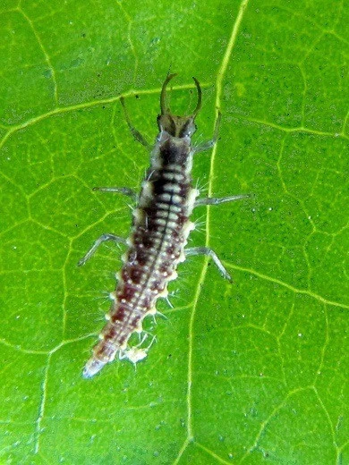 Da sich die erwachsene Florfliege nur von Pollen und Nektar ernährt, eignet sich für die Schädlingsbekämpfung ausschließlich die 5 – 10 mm große Larve. Wegen ihres behaarten Körpers werden diese auch ‚Blattlauslöwen‘ genannt. Während der Entwicklungszeit von 2 – 3 Wochen vertilgen die Florfliegenlarven zwischen 500 und 800 Blattläuse.
