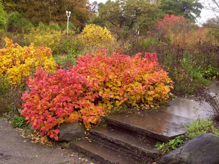 Über die Sommermonate bilden sich sehr robuste und ledrige Blätter, die im Herbst mit einer imposanten Färbung von gelb über orange, bis hin zu einem intensiven rot begeistern. Über den Winter erstrahlt der gesamte Strauch durch seine silbergraue Rindenfärbung.