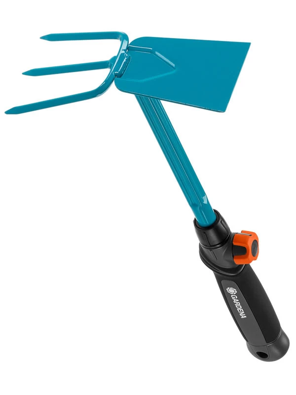 Praktisch: Der Handgriff kann einfach entfernt werden und durch einen beliebigen combisystem-Stiel ersetzt werden – für ein angenehmes Arbeiten ohne Bücken. Das gerade geformte Blatt und die drei Zinken sind aus hochwertigem Qualitätsstahl und Duroplast-beschichtet.