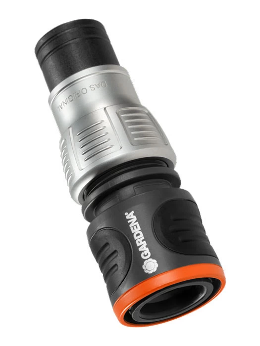 Der hochwertige GARDENA Premium Wasserstop in hochwertiger Metall-Kunststoff-Ausführung ermöglicht einen schnellen, komfortablen Anschluss und Gerätewechsel am Schlauchende.