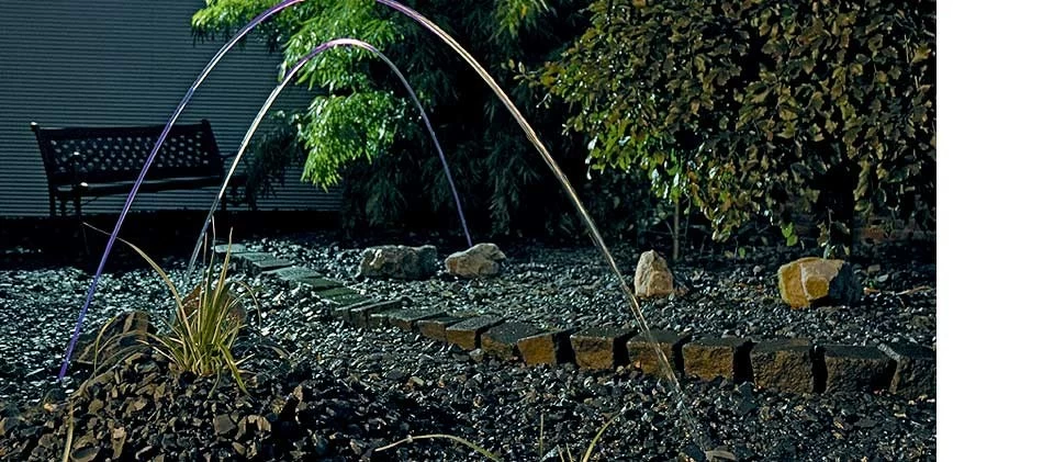 Der laufende Lichteffekt und der Wasserstrahlabschneider sorgen für ein einzigartiges Wassererlebnis. Einzelne Wasser-Licht-Elemente scheinen durch die Luft zu fliegen. An die Steuerungseinheit lässt sich max. ein Erweiterrungsset anschließen.