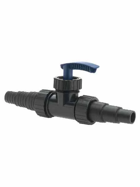 Der OASE Durchflussregler 1 1/2″ zur stufenlosen Anpassung der Wasserdurchflussmenge verfügt über 2 Universal-Stufenschlauchtüllen für den Anschluss von 1″- bis 1 1/2″-Schläuchen.