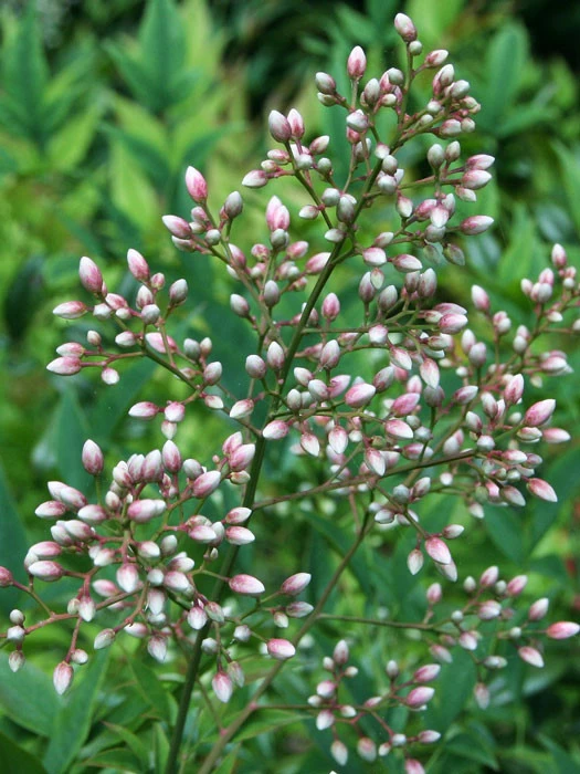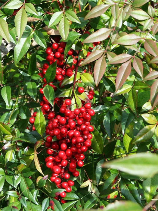 Der Himmelsbambus hat mit dem Garten-Bambus nichts gemein. Er gehört zur Familie der Berberitzen Gewächse, hat jedoch keine Stacheln. Der deutsche Name entstammt wohl der häufigen Verwendung in den Tempelgärten Japans. Dieser kleine, immergrüne Zierstrauch bezaubert mit seiner jahreszeitlich wechselnden Farbenpracht der Blätter ebenso wie mit seiner Blüte und dem Beerenschmuck.