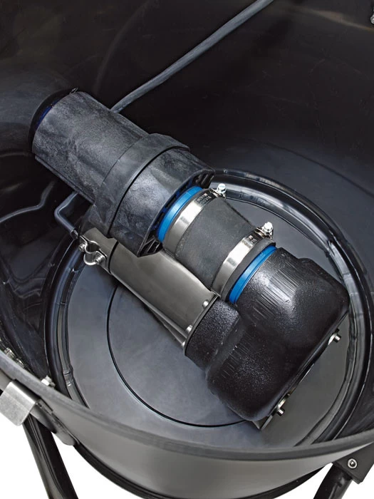 Schon rein optisch ist der OASE PondoVac Premium von beeindruckender Größe, schließlich muss das Behältervolumen von 90 Litern auch irgendwo aufgehoben sein. Das Profigerät verfügt über eine Saugleistung von 20.000 Liter pro Stunde und arbeitet ohne störende Unterbrechung. Denn Ansaugen und Entleeren erfolgt gleichzeitig, wobei die Entleerung über einen Ablaufschlauch bis zu einer Höhe von 1,80 Meter möglich ist. Der Teichsauger verfügt über eine LED Füllstandsanzeige und einen Handtaster für Pumpe und Sauger. Angetrieben wird der OASE PondoVac Premium von einer leistungsstarken Förderpumpe, die einen Korndurchgang von bis zu 50 Millimeter erlaubt.