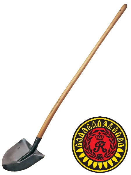 Frankfurter Schaufel zum Schippen von Sand, Kies und anderen Schüttgütern, auch als Grabeschaufel geeignet. Hochwertiger Eschenholzstiel