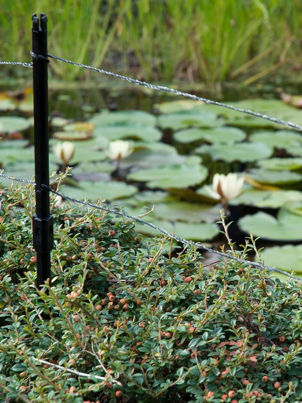 Eine sehr effektive Art, unerwünschte Tiere vom Teich fern zu halten, ist die Einfriedung mit diesem Schwachstromzaun von Velda. Die unangenehme Erfahrung bei der Berührung mit dem Zaun bewirkt bei beispielsweise Reihern, Kormoranen und Katzen eine Fluchtreaktion und sie werden zukünftig wegbleiben. Die Fische sind im Teich wieder sicher.