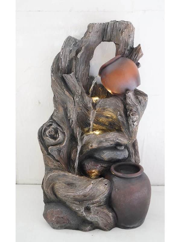 Das Wasserspiel Nanda, aus Polystone ist echtem Holz nachempfunden.